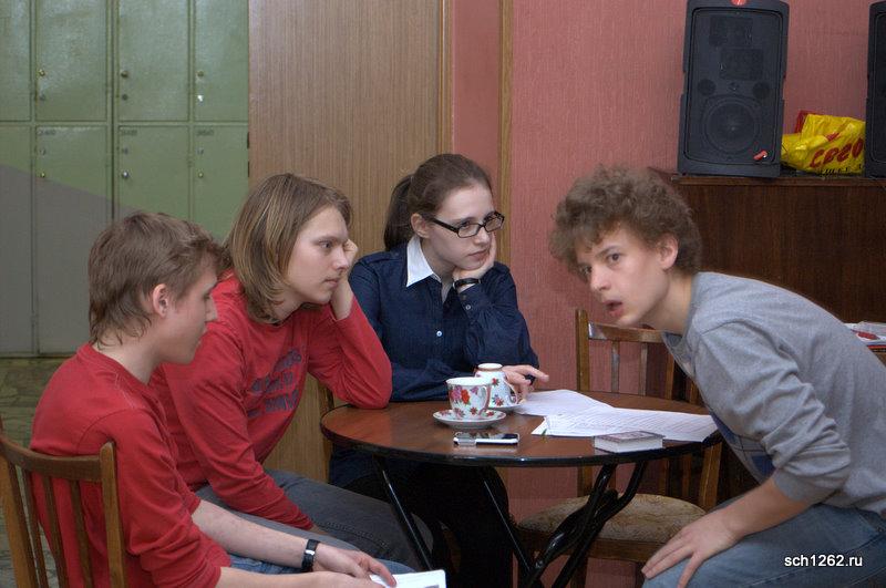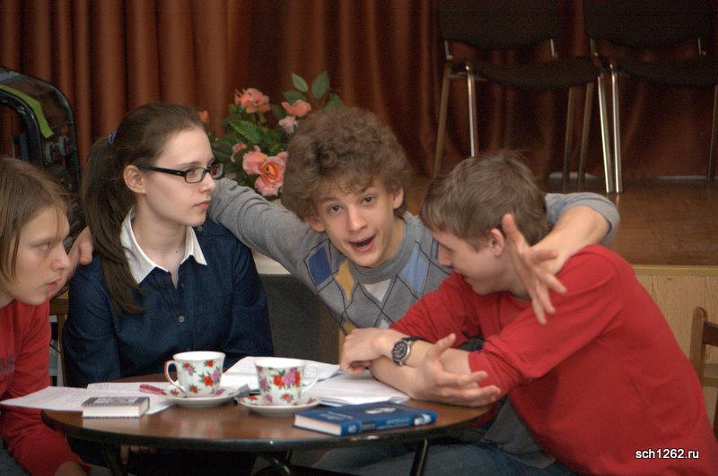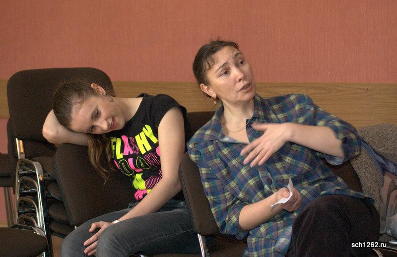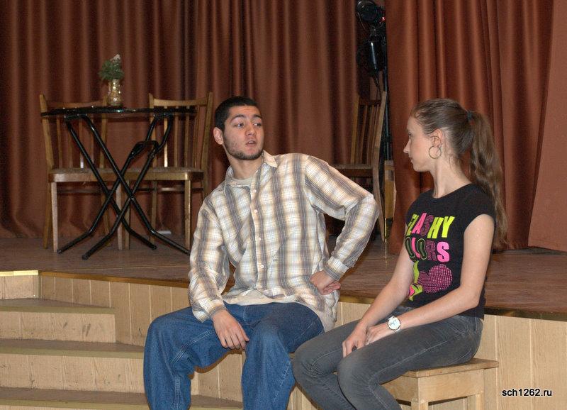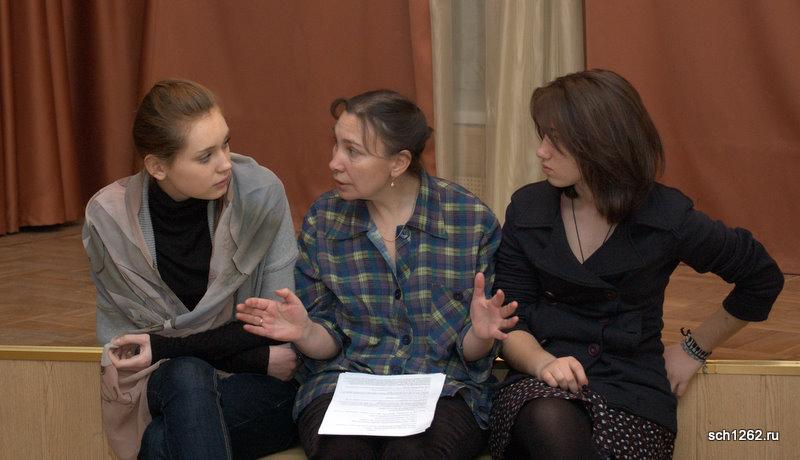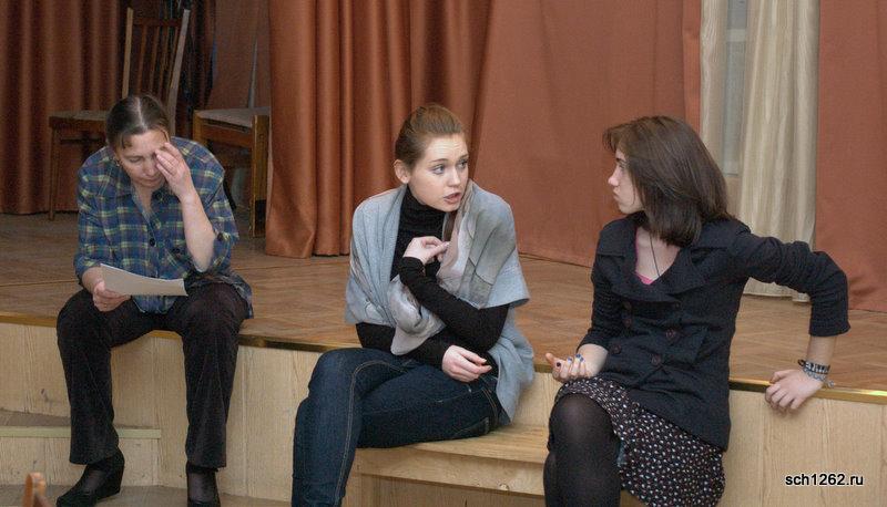 Генеральная репетиция отрывков из спектаклей по произведениям А.Н. Островского в школе 1262 в рамках подготовки к празднованию дня рождения великого драматурга